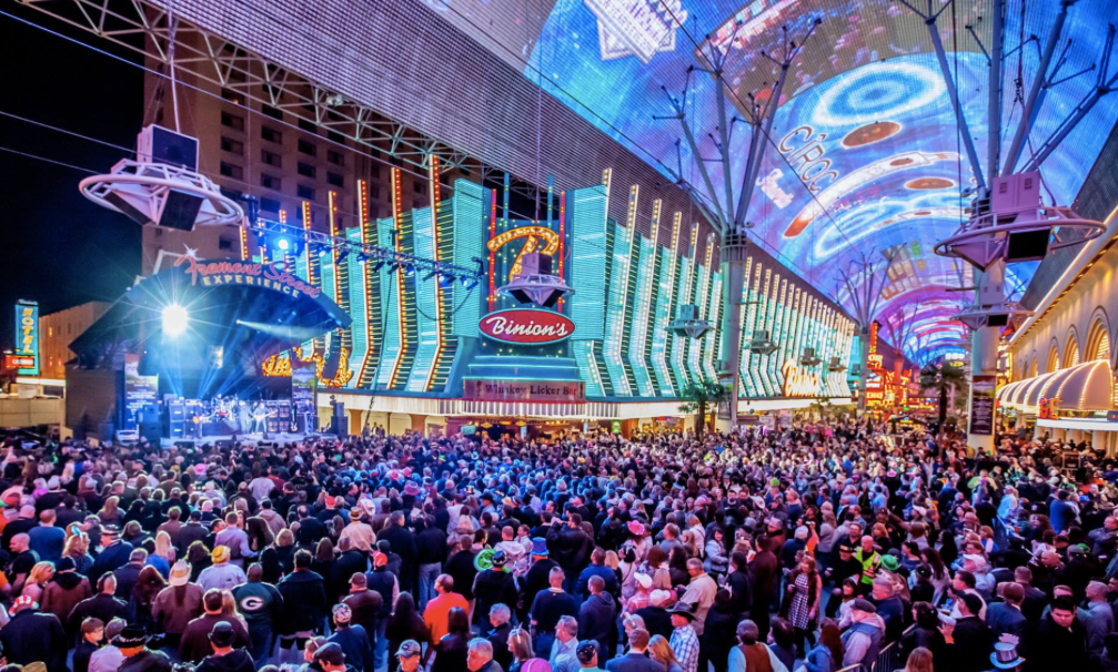 - Аллея Фремонт — крытая, пешеходная улица, со сферическим потолком-экраном на котором каждый вечер происходит красочное визуальное шоу. Вдоль обоих сторон аллеи расположены бесчисленные бары, казино и игровые залы;