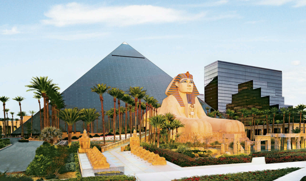 - Отель Казино Люксор — созданный в виде огромной египетской пирамиды, вход в который охраняет огромный сфинкс — точная копия своего прародителя. Отель известен далеко за пределами города, благодаря наличию в нем огромных аквариумов с настоящими акулами;